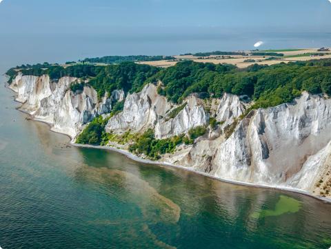 Los acantilados de Møn, situados a orillas del mar Báltico, son una impresionante muestra de la belleza natural de nuestro planeta. Formados durante la última glaciación del Pleistoceno, constituyen un auténtico laboratorio natural para el estudio de la geología y la biodiversidad. En sus laderas prospera una rica variedad de flora y fauna, que incluye 18 especies de orquídeas y la mariposa hormiguera de lunares, una especie casi amenazada. La constante acción de la erosión revela nuevos fósiles y transforma sin cesar el perfil de estos majestuosos acantilados, uno de los paisajes más singulares de Dinamarca.